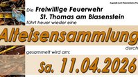 Am 11.04.2026 wurde die diesjährige Alteisensammlung der FF St. Thomas/Bl. durchgeführt – und das äußerst erfolgreich. Insgesamt konnten 40 Hausabholungen verzeichnet werden, was einmal mehr die großartige Unterstützung der Thomingerinnen und Thominger unterstreicht.
