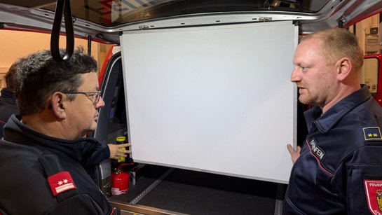 Nach einer ausführlichen Wiederholung der Grundlagen zum Einsatzleitsystem sowie zum Statusfunk konnten die KameradInnen ihr Wissen auffrischen und weiter vertiefen. Im Anschluss wurde das neue Mannschaftstransportfahrzeug (MTF) nochmals detailliert vorgestellt. Dabei lag der Fokus insbesondere auf den vielfältigen und flexiblen Nutzungsmöglichkeiten des Fahrzeugs.