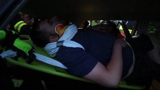 Szenario war ein Verkehrsunfall zwischen Auto und Moped mit verletzten Personen.