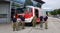 Eine kleine Abordnung um den Kommandanten Günther Kastner und Bürgermeister Michael Naderer holen das Fahrzeug am 18.8.2020 von der Firma Rosenbauer in Leonding ab. Die jahrelangen Vorarbeiten und Bemühungen von Gemeinde und FF haben sich gelohnt, denn die Kameraden konnten nun ein perfekt ausgestattetes Fahrzeug in Betrieb nehmen. Die Finanzierung des Autos und der Ausstattung teilten sich Land OÖ, das LFK, die Marktgemeinde und zu einem sehr großen Teil auch die FF St. Thomas/Bl. Mithilfe von Privatspenden.